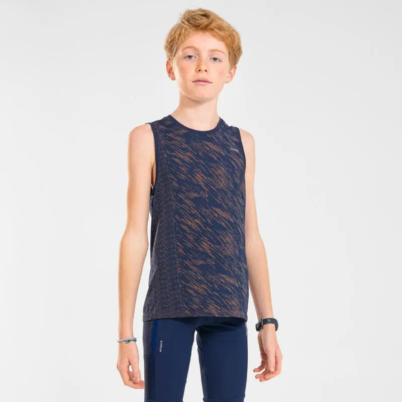 KUPIMA Camiseta Sin Mangas Running Sin Costuras Niños – KIPRUN CARE Marino Naranja