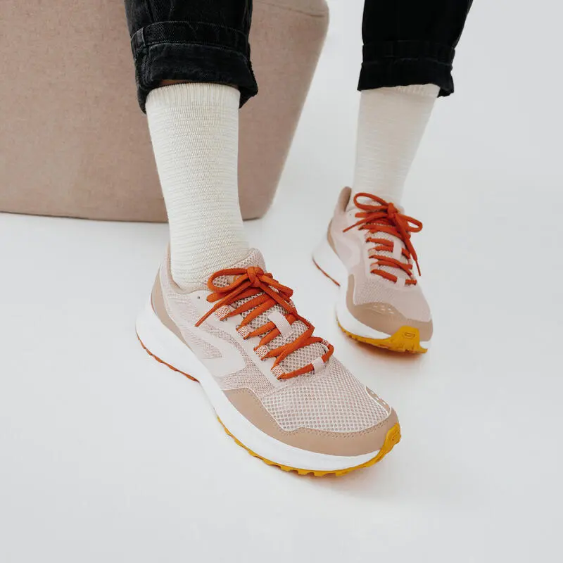 Compra en Decathlon Calcetines caminar altos x2 Urban Walk beis Calcetines altos de colores con un tejido de punto que se ajusta al pie para limitar las zonas de roce y maximizar así el confort y la sujeción diaria.