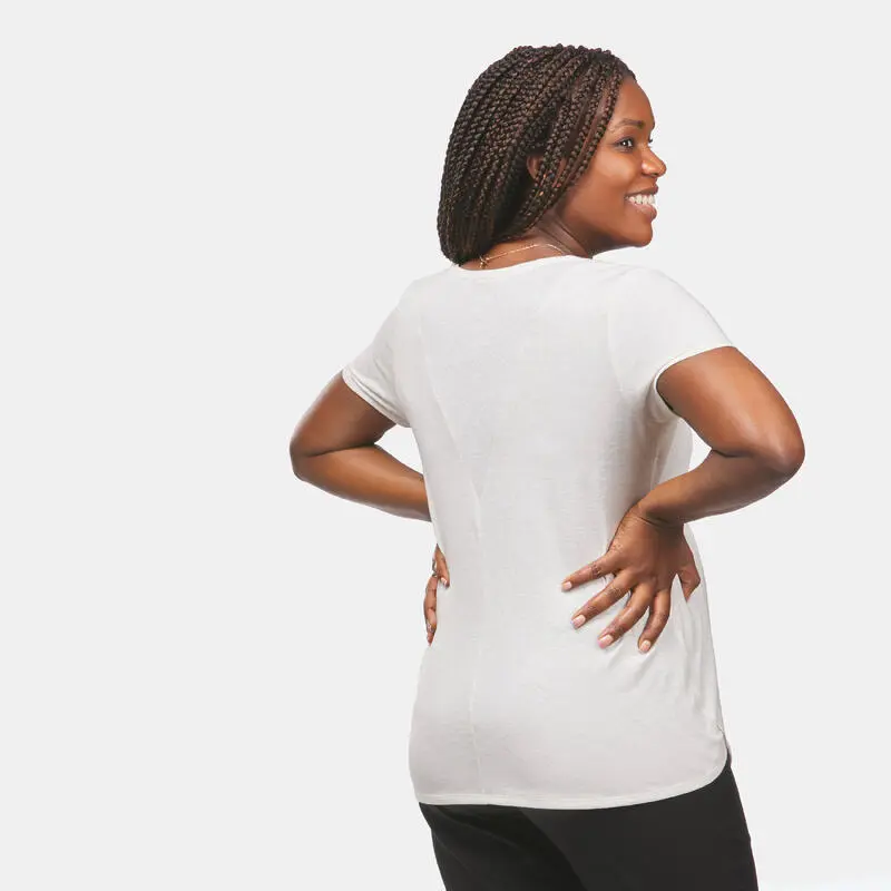 Compra en Decathlon Camiseta de montaña y trekking embarazo y lactancia Mujer Nuestros diseñadores han ecodiseñado y co-creado con las mamás y para las mamás, esta camiseta de maternidad para hacer senderismo en planicie, bosque y litoral.