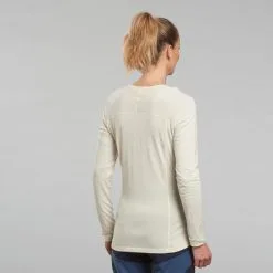 Camiseta Montaña Y Trekking Lana Merina Mujer Forclaz Trek 500 Negro
