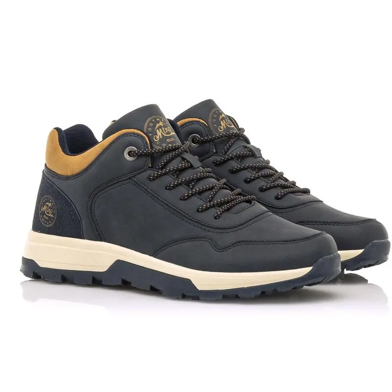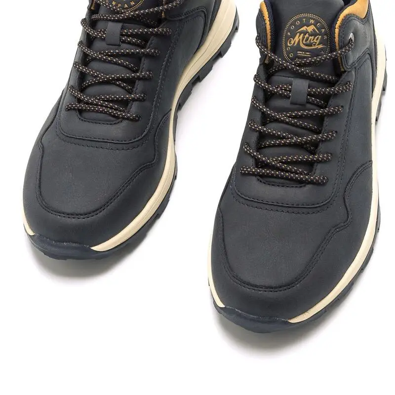 Compra en Decathlon Zapatillas de caminar para hombre mtng fonix en color azul Zapato abotinado Fonix mtng para chico de color azul marino combinada en diferentes texturas y con detalle de una de las piezas de la caña en marrón, con cordones redondos de estilo sport. Un modelo .